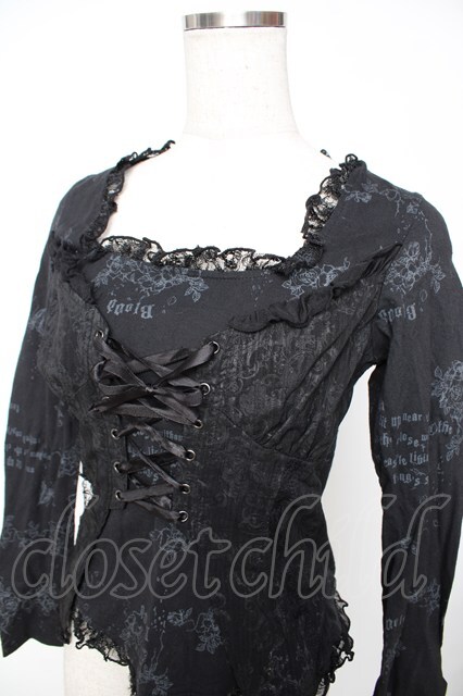 h.naoto Blood / レースアップフリルptレイヤード風トップス 黒 Y-25-11-22-116-HN-TO-SZ-ZS [戻る]