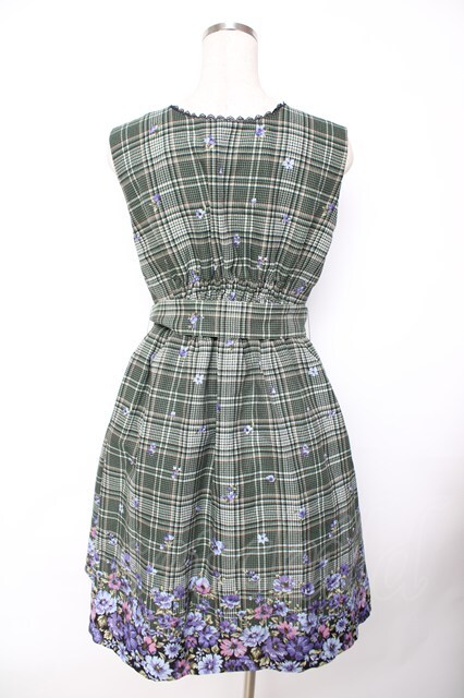 axes femme / チェック×花柄ワンピース M グリーン Y-25-11-22-173-AX-OP-SZ-ZI