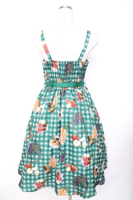 axes femme POETIQUE / フリュイ・コンフィ柄ワンピース M グリーン Y-25-11-22-175-AX-OP-SZ-ZI