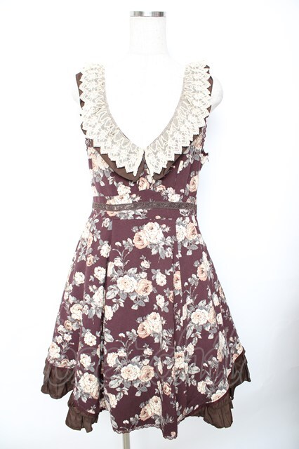 axes femme / 総バラ柄Backリボンワンピース M ワイン Y-25-11-22-183-AX-OP-SZ-ZI
