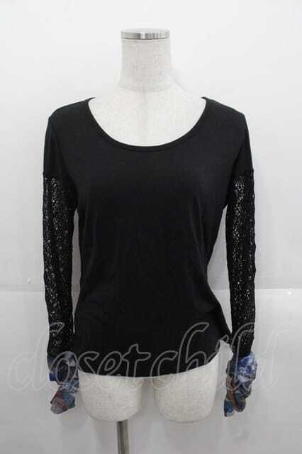 Qutie Frash / 透かし切替カットソー 黒X青 I-25-11-18-012-QU-TO-SA-ZI
