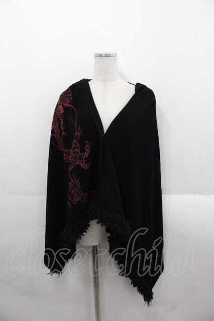 Qutie Frash / 龍プリントフードケープ 黒X赤 I-25-11-18-020-QU-JA-SA-ZI