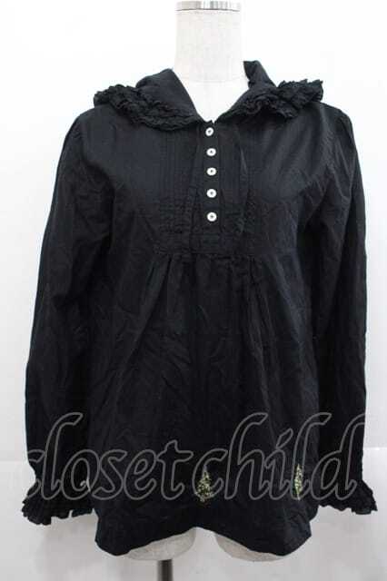 PINK HOUSE / 裾ツリー刺繍長袖フードブラウス ブラック I-25-11-18-024-LO-BL-SA-ZI