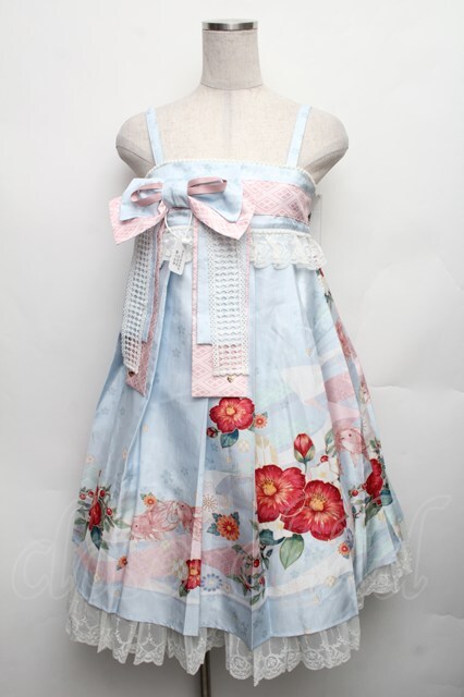 Nyanya / 山茶歌謠ハイウエストショート丈ジャンパースカート S 浅葱 S-26-01-23-030-EL-OP-SA-ZT147