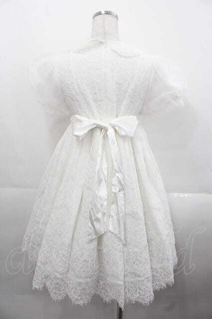 choker rabbit(海外ロリータブランド) / 総レースロゴリボンワンピース S ホワイト I-25-11-18-049-LO-OP-SA-ZI