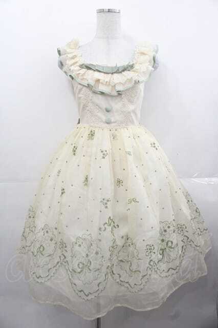 玻璃紙之夜(Nuit De Cellophone)(海外ロリータブランド) / 幽谷風鈴フロッキージャンパースカート XS グリーン I-25-11-18-050-LO-OP-SA-ZS [戻る]