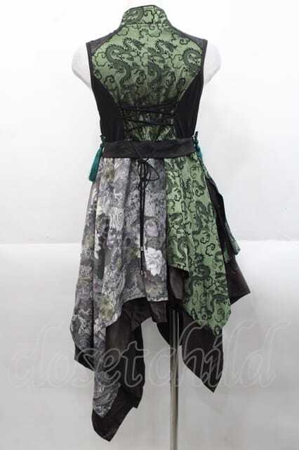 Qutie Frash / チャイナノースリーブチュニック 黒X緑 I-25-11-18-061-QU-TO-SA-ZI