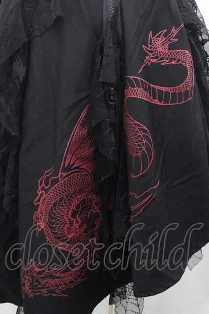 Qutie Frash / 龍プリントZIP蜘蛛の巣レーススカート 黒 I-25-11-18-073-QU-SK-SA-ZI