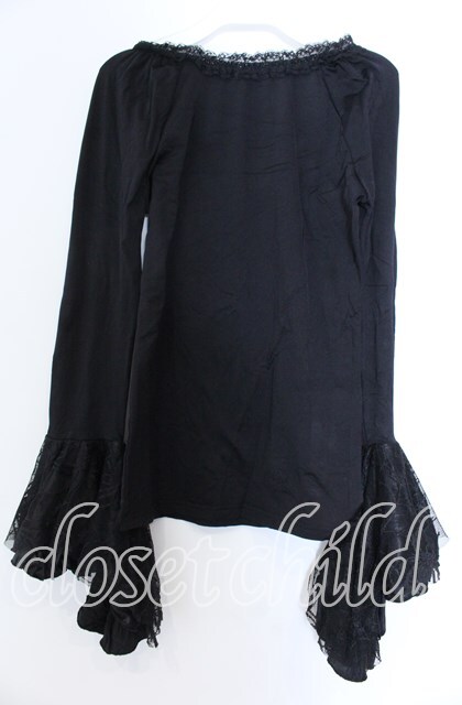 Qutie Frash / 異素材フリル姫袖カットソー ブラック O-25-11-19-043-QU-TO-IG-OS [戻る]