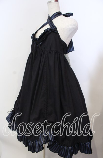 PEACE NOW / ストライプサテンホルターワンピース M ブラック×ブルー O-25-11-19-025-PU-OP-IG-OS