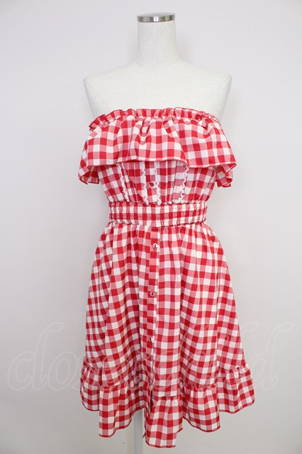 DearMyLove / 5WAYショートワンピース M 赤X白チェック T-25-11-21-008-EL-OP-SA-ZI