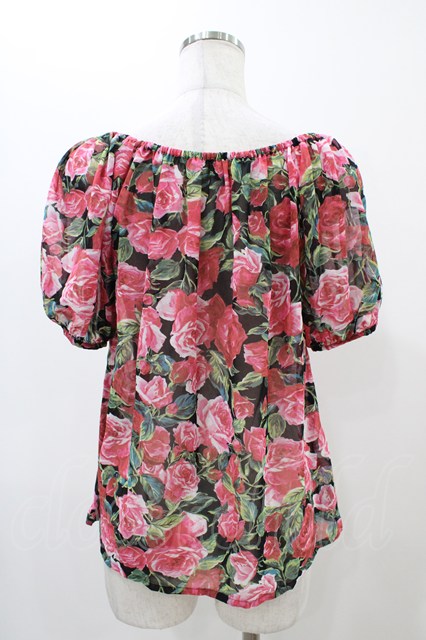 JESUS DIAMANTE / バレンシアパフブラウス Free バロックレッドローズ柄黒 H-25-11-26-1046-JE-BL-NS-ZH