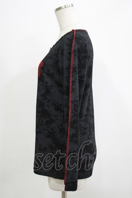 ALGONQUINS / ロゴクラウン刺繍カットソー 黒×赤 H-25-11-25-064-AL-TO-KB-ZH