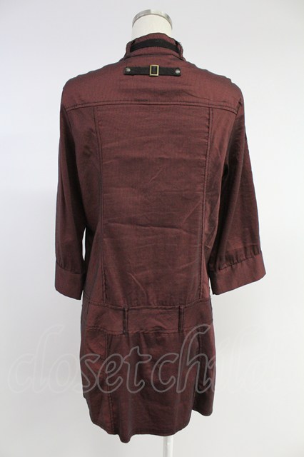 Ozz Croce / ハイネックストライプスナップボタンワンピース ボルドーX黒 T-25-11-23-011-OO-OP-SA-ZI