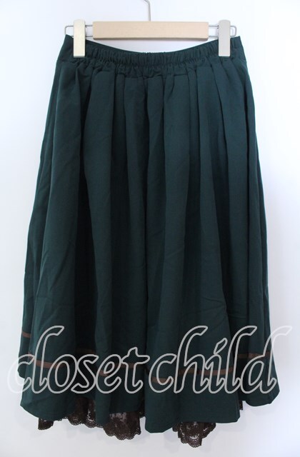axes femme / 薔薇×額縁刺繍ミドルスカート グリーン O-25-11-21-015-AX-SK-IG-OS