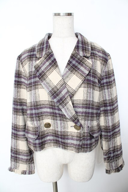 axes femme POETIQUE / 【タグ付き】起毛チェックショートジャケット M アイボリー?パープル?グレー Y-25-11-21-067-AX-JA-IG-ZI