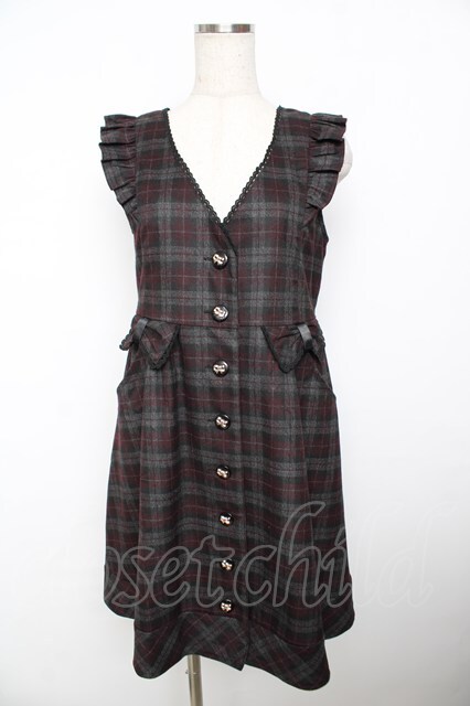 axes femme / チェック柄リボンジャンドレ ワイン Y-25-11-21-081-AX-OP-SZ-ZY