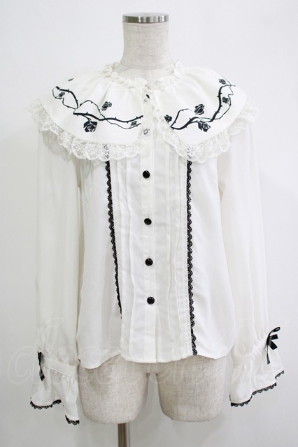 DearMyLove / いばらの薔薇デザインフリルブラウス M ホワイト H-25-11-19-048-EL-BL-NS-ZH [戻る]