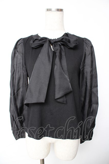 evelyn / タイ付きカットソー 黒 Y-25-11-24-043-LO-TO-SZ-ZY