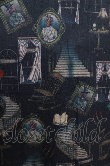 DXMOUVE / 亡霊の館柄スクエアカラーシャツワンピース ブルー H-25-11-28-014-PU-OP-KB-ZH