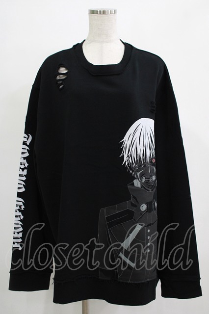 QOOZA / 東京喰種×QOOZA金木研 ダメージスウェット ブラック H-25-11-28-029-PU-TO-KB-ZH