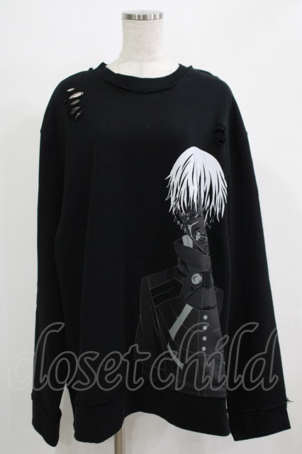 QOOZA / 東京喰種×QOOZA金木研 ダメージスウェット ブラック H-25-11-28-031-PU-TO-KB-ZH