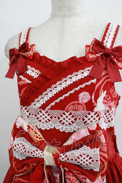 metamorphose / 花鳥風月〜乙女のはなごろも〜プリーツジャンパースカート(草柄リボン) Free 赤紅(Red) H-25-11-29-003-ME-OP-NS-ZH