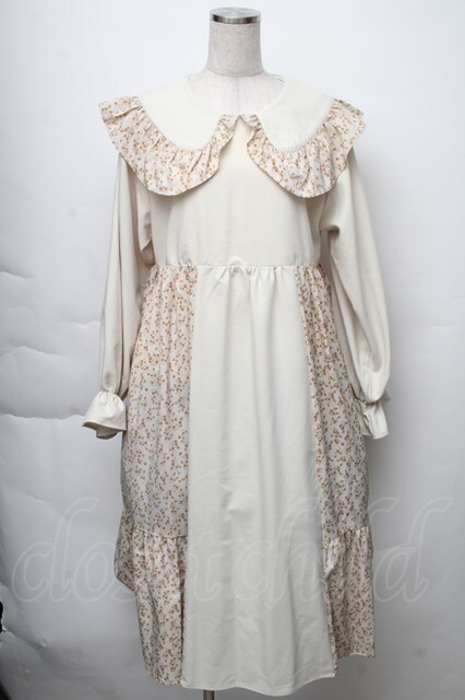merry jenny / 切替flowerフリルワンピース ベージュ S-25-11-23-028-LO-OP-HR-ZS