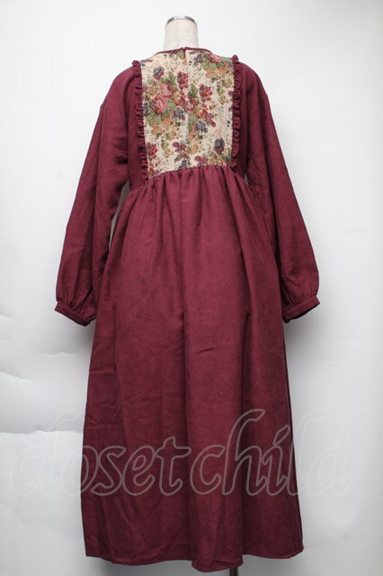 merry jenny / ジャガードコンビコールワンピース ボルドー S-25-11-23-1050-LO-OP-HR-ZS