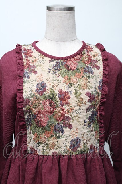 merry jenny / ジャガードコンビコールワンピース ボルドー S-25-11-23-1050-LO-OP-HR-ZS