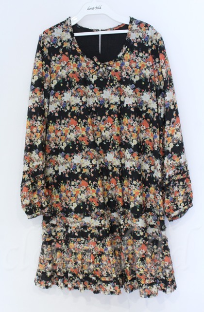 INGEBORG / ローンフリル使い花柄ワンピース 11号 クロ O-25-11-24-012-LO-OP-OW-ZT367