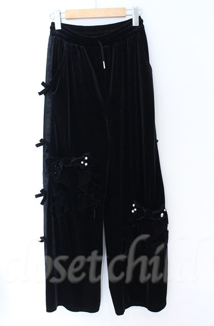 Jamie エーエヌケー / リボンベロアパンツ M クロ O-25-11-24-059-LO-PA-OW-ZT282