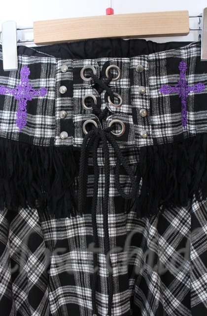 ALGONQUINS / フリンジコルセット付きイレヘムタータンスカート F ブラックxホワイト O-25-11-24-049-AL-SK-YM-OS [戻る]