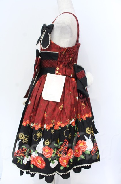 metamorphose / 風花のゆきうさぎプリーツジャンパースカート えんじ×クロ O-25-11-24-004-ME-OP-IG-OS