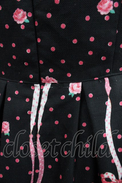 Emily Temple cute / ROSEブーケノースリーブワンピース 黒Xピンク I-25-11-24-058-ET-OP-SA-ZI