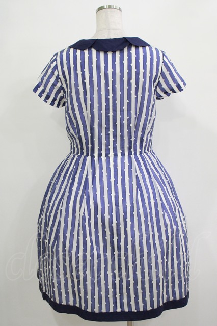 Jane Marple / ドビードットストライプワンピース - ブルー H-25-12-03-028-JM-OP-ET-ZH