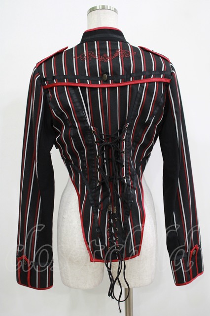 Ozz oneste / ストライプショートジャケット 黒 H-25-12-03-054-OO-JA-KB-ZH