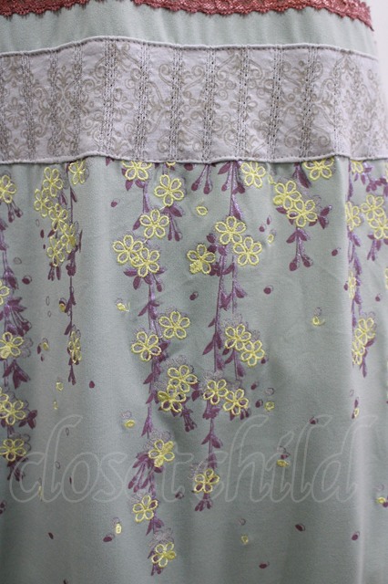 Ozz oneste / 枝垂れ桜切替ロングスカート ミント H-25-12-03-018-OO-SK-KB-ZH