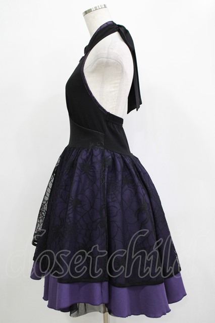 Qutie Frash / チャイナホルターワンピース 黒×紫 H-25-12-03-027-QU-OP-KB-ZH