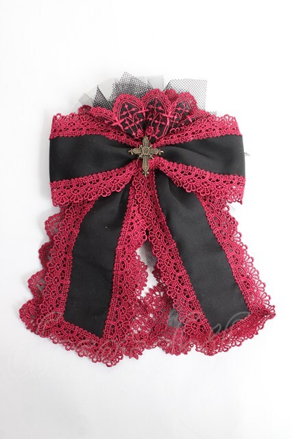 Moi-meme-Moitie / M+CROIXリボンレースカチューシャ ブラック×レッド Y-25-11-26-024-MO-AC-SZ-ZY