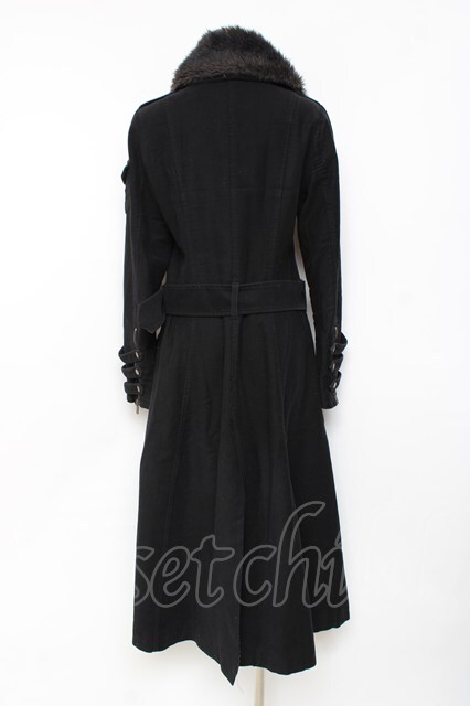 BPN / 襟ファーデザインロングコート 黒 Y-25-11-26-116-GO-CO-SZ-ZY