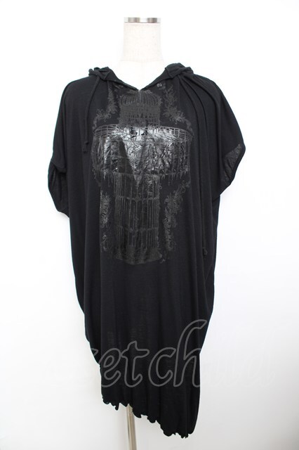 ALGONQUINS / プリント半袖ロングBIGカットソー F 黒 Y-25-11-26-128-AL-TO-SZ-ZY
