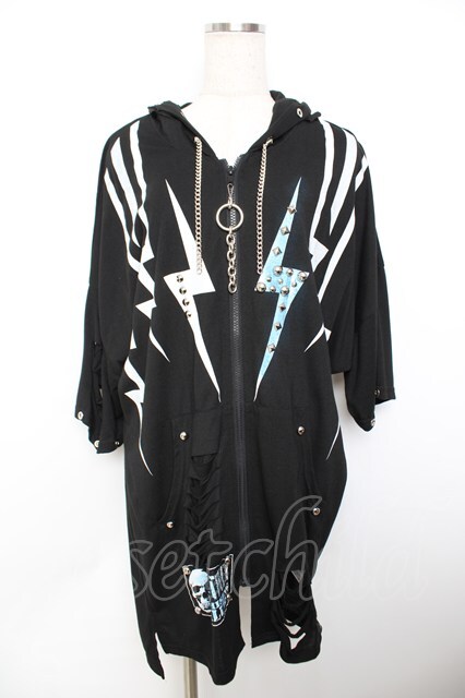 SEX POT ReVeNGe / イナズマptダメージ加工入りパーカー F 黒 Y-25-11-26-138-SP-TO-SZ-ZY