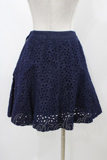 Jane Marple / カットワークデニムスカート M ネイビー H-25-12-02-1048-JM-SK-KB-ZH