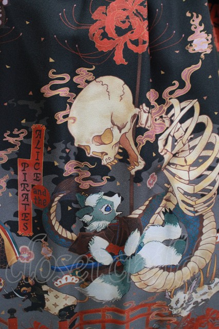 ALICE and the PIRATES / クリスの百鬼夜行〜宵に咲き誇る妖の華〜柄スカート Free 墨×エンジ(Black) H-25-12-04-011-PA-SK-NS-ZH [戻る]
