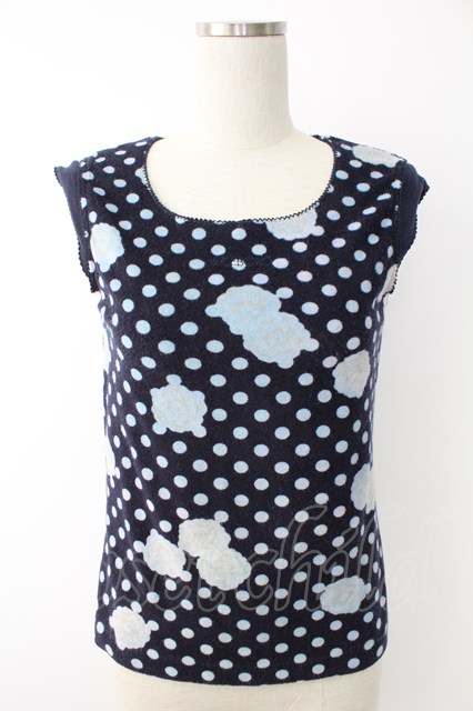 INGEBORG / パイル地カメリアドット半袖トップス ネイビーX白 T-25-11-28-011-LO-TO-SA-ZT237