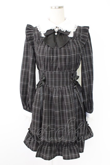 Secret Honey / サイド編み下げチェック長袖ワンピース 黒X白 T-25-11-28-015-CA-OP-SA-ZT