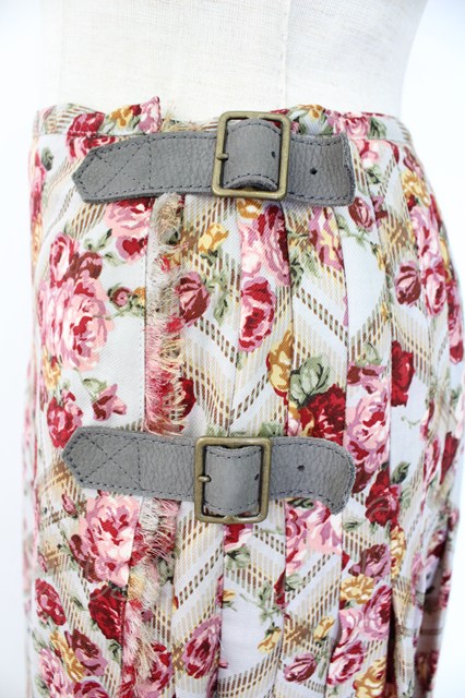 INGEBORG / チェック花柄キルト風スカート サックス T-25-11-28-025-LO-SK-SA-ZI