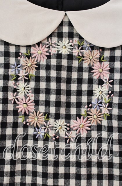Fi.n.t / フラワーサークル刺繍ギンガムチェック半袖ワンピース クロ×アイボリー O-25-11-27-078-CA-OP-IG-OS
