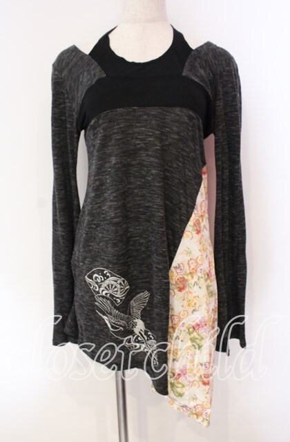 gouk / 和柄切り替えホルターネックカットソー ブラック O-25-11-27-033-GO-TO-IG-OS [戻る]